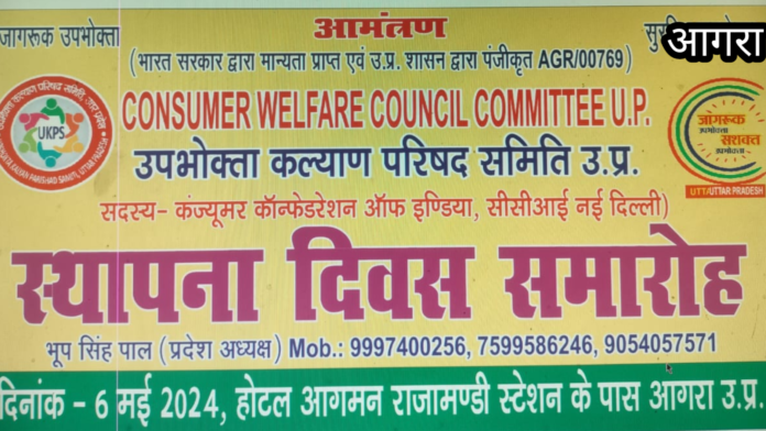आगरा में दिनांक 6 /5 /2024 को उपभोक्ता कल्याण परिषद समिति उत्तर प्रदेश के स्थापना दिवस मनाया
