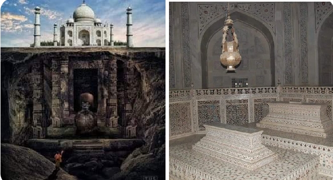 ताजमहल एक प्राचीन शिवमंदिर है जिसका असली नाम तेजोमहालय है तेजोमहालय के अंदर एक शिवलिंग था और उस शिवलिंग के ऊपर कलश में से कुदरती रूप से उस शिवलिंग के ऊपर जलाभिषेक होता था