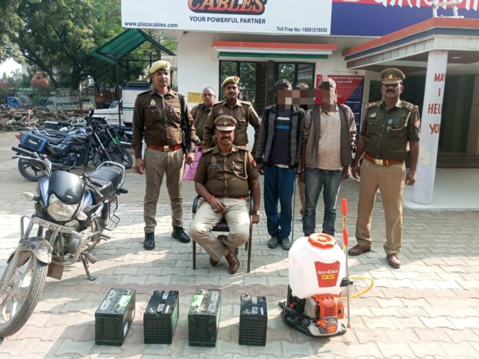 थाना हाथरस जंक्शन पुलिस द्वारा 02 चोरो को किया गिरफ्तार, कब्जे से चोरी की स्प्रे मशीन,04 बैट्री व चोरी की एक मोटरसाइकिल बरामद