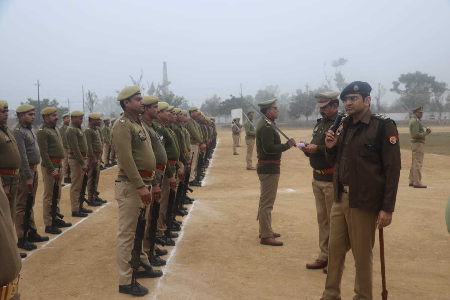 पुलिस अधीक्षक हाथरस द्वारा पुलिस लाइन में गणतंत्र दिवस की परेड के रिहर्सल का निरीक्षण कर व गणतंत्र दिवस की तैयारियों की समीक्षा कर संबंधित को आवश्यक दिशा-निर्देश दिये गये ।