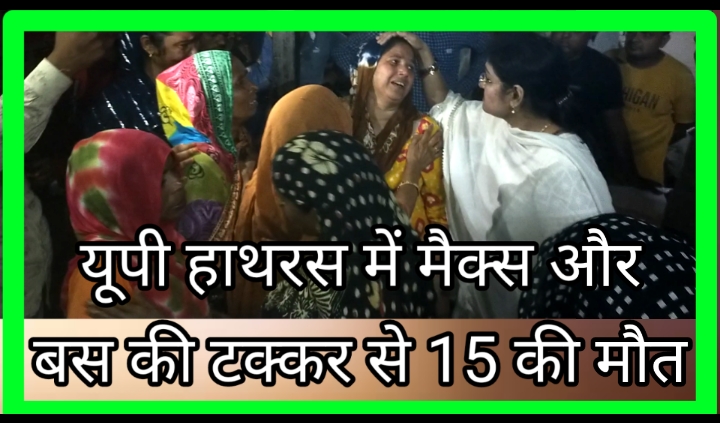 यूपी हाथरस में मैक्स और बस की टक्कर, 15
