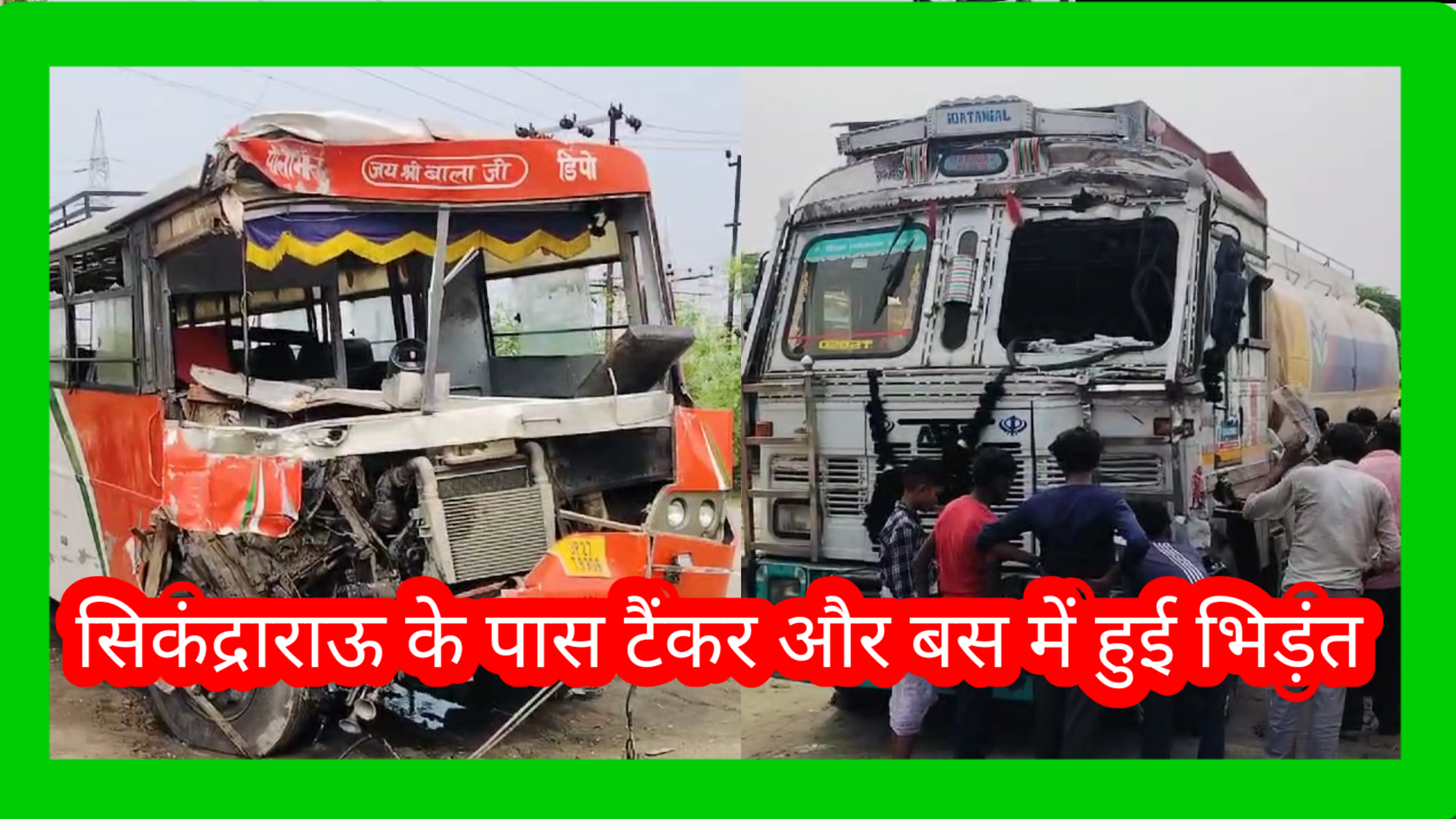 सिकंद्राराऊ के पास टैंकर और बस में हुई भिड़ंत