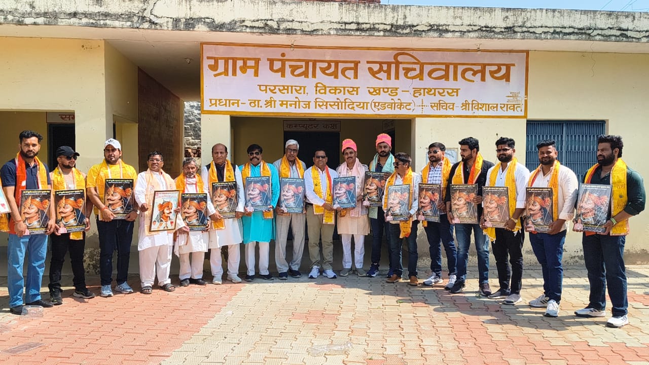 हाथरस के गांव परसारा में महाराणा प्रताप शोभायात्रा के अध्यक्ष व संयोजक और उनकी टीम का भव्य स्वागत