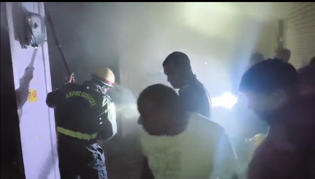 होली वाली गली के पास सर्कुलर रोड स्थित चैतन कॉम्प्लेक्स में मेडिकल स्टोर की दुकान में लगी आग