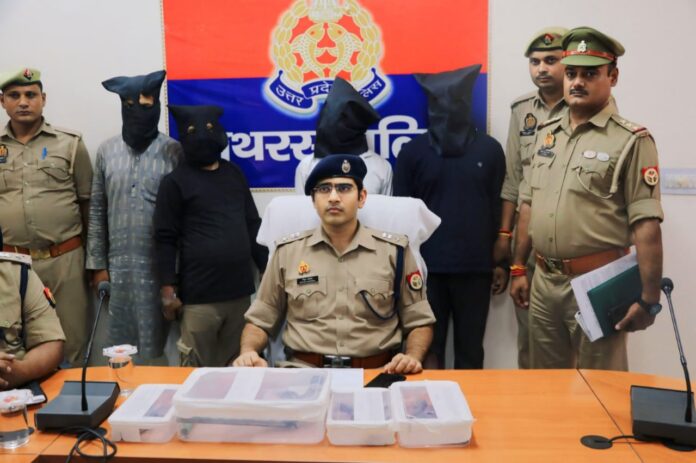हाथरस में पुलिस ने एक सर्राफा कारोबारी के यहां डकैती के प्रयास की वारदात का खुलासा किया है। पुलिस ने चार बदमाशों को हथियारों और बाइक सहित गिरफ्तार किया है। सर्राफा व्यवसाय सौरभ अग्रवाल निवासी अग्रसेन विहार कॉलोनी आगरा रोड के घर पर 26 मई की रात्रि में बदमाशों ने डकैती डालने का प्रयास किया था। लेकिन सौरभ इन बदमाशों से भिड़ गए थे।