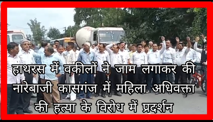 हाथरस में वकीलों ने जाम लगाकर की नारेबाजी कासगंज में महिला अधिवक्ता की हत्या के विरोध में प्रदर्शन आरोपियों के गिरफ्तारी की मांग