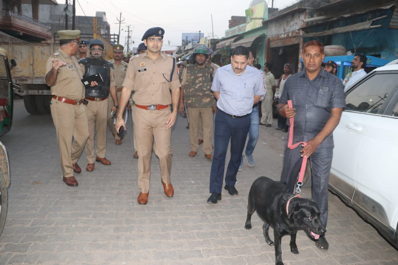 आज दिनांक 08.10.2024 को पुलिस अधीक्षक हाथरस श्री निपुण अग्रवाल व जिलाधिकारी हाथरस श्री राहुल पाण्डेय द्वारा संयुक्त रुप से आगामी त्यौहार रामनवमी, दशहरा/विजयदशमी, वाल्मीकि जयन्ती, धनतेरस/दीपावली/गोवर्धन पूजा आदि त्यौहारो के दौरान जनपद में शान्ति, सुरक्षा व कानून व्यवस्था को सुदृढ बनाये रखने के दृष्टिगत अपर पुलिस अधीक्षक, क्षेत्राधिकारी नगर, क्षेत्राधिकारी याातायात, प्रभारी निरीक्षक थाना कोतवाली हाथरस, प्रभारी निरीक्षक थाना हाथरस गेट, थानाध्यक्ष महिला थाना मय पुलिस फोर्स व डॉग स्क्वायॉड के साथ नगर क्षेत्र के इगलास फाटक, मधुगढ़ी, मुरसान गेट चौराहा, घण्टाघर, रामलीला ग्राउण्ड, पंजाबी मार्केट, तालाब चौराहा आदि आदि मुख्य बाजारों/स्थानों में फ्लैग मार्च किया गया । इस दौरान पुलिस अधीक्षक हाथरस व जिलाधिकारी हाथरस द्वारा नगर क्षेत्र के मुख्य बाजारों/स्थानों में पैदल गस्त किया गया । पुलिस अधीक्षक हाथरस व जिलाधिकारी हाथरस द्वारा नगर क्षेत्र के मुख्य बाजारो/स्थानो पर भ्रमण कर आमजन को सुरक्षा का एहसास दिलाया गया । इस दौरान दुकानदारों/व्यापारियों से वार्ता कर कानून एवं शान्ति व्यवस्था की स्थिति का जायजा लिया तथा उन्हें सुरक्षा के दृष्टिगत अपने-अपने प्रतिष्ठानों पर सीसीटीवी कैमरे लगाने व संदिग्ध व्यक्तियों के दिखने पर तत्काल पुलिस को सूचित करने को कहा गया । साथ ही आगामी त्यौहारो को सौहार्दपूर्ण एवं शान्तिपूर्वक मनाने की अपील की गयी । पुलिस अधीक्षक महोदय द्वारा गस्त के दौरान क्षेत्र में शान्ति व्यवस्था हेतु लगायी गयी ड्यूटियों को चेक करते हुए ड्यूटी पर मौजूद पुलिस कर्मियों को आवश्यक दिशा निर्देश दिये गये ।
